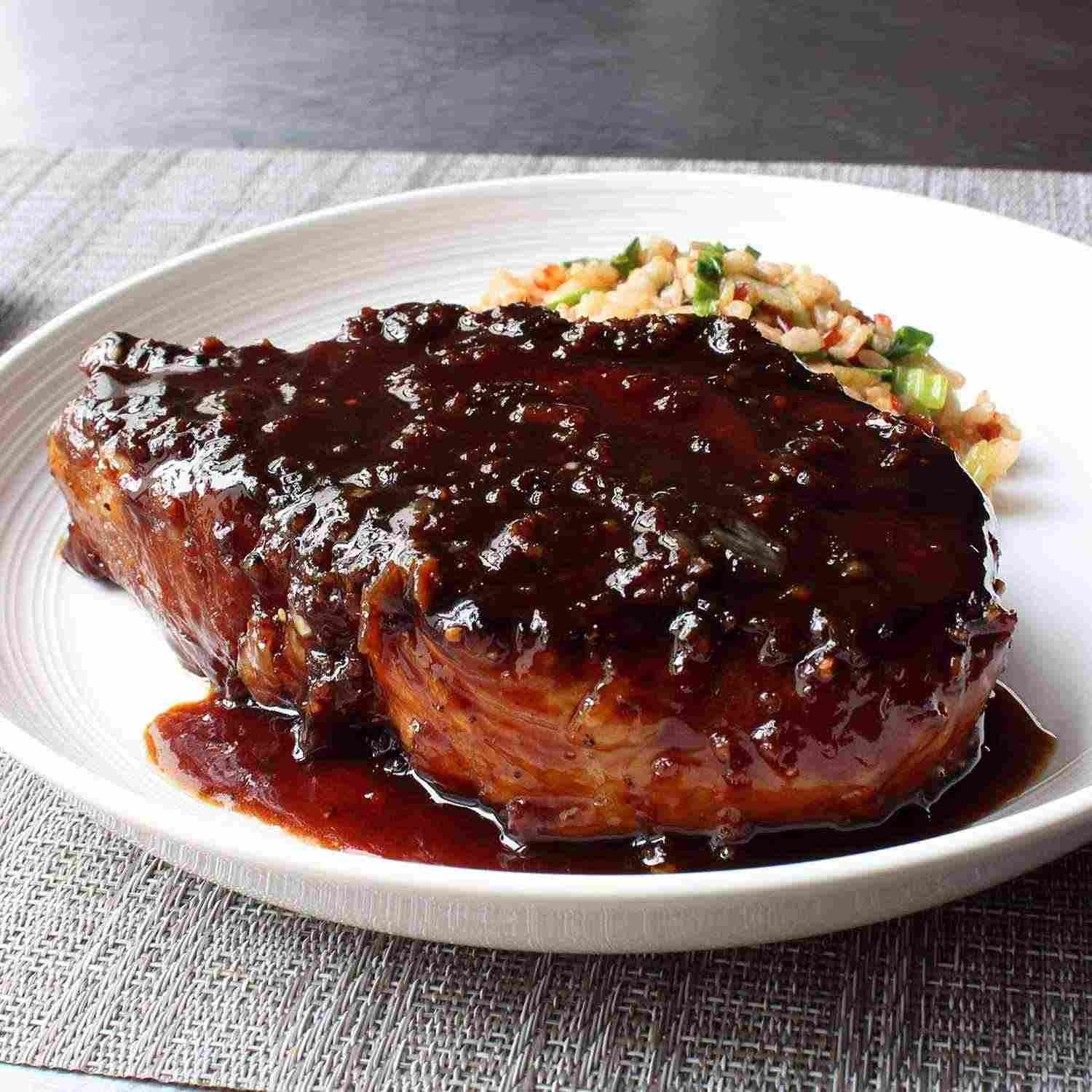 - Step 7:Plate each pork chop and spoon a portion of the sticky garlic sauce on top.